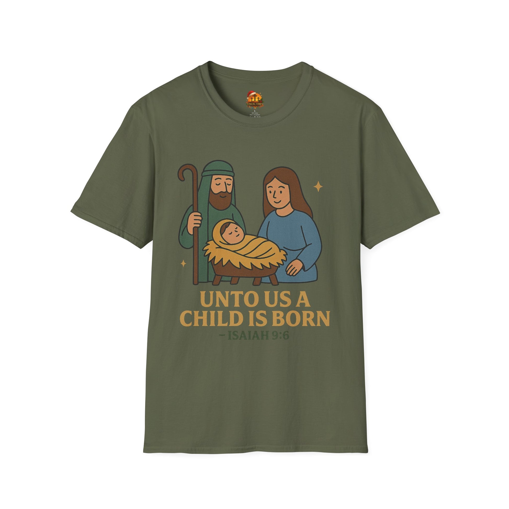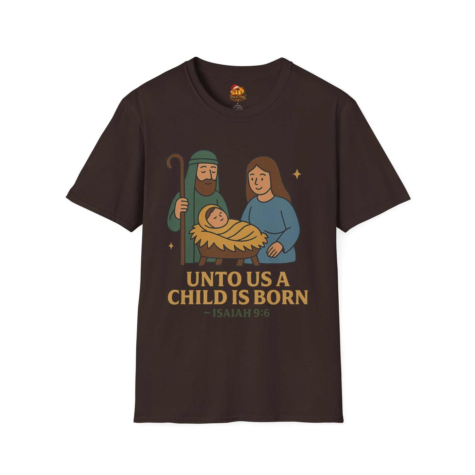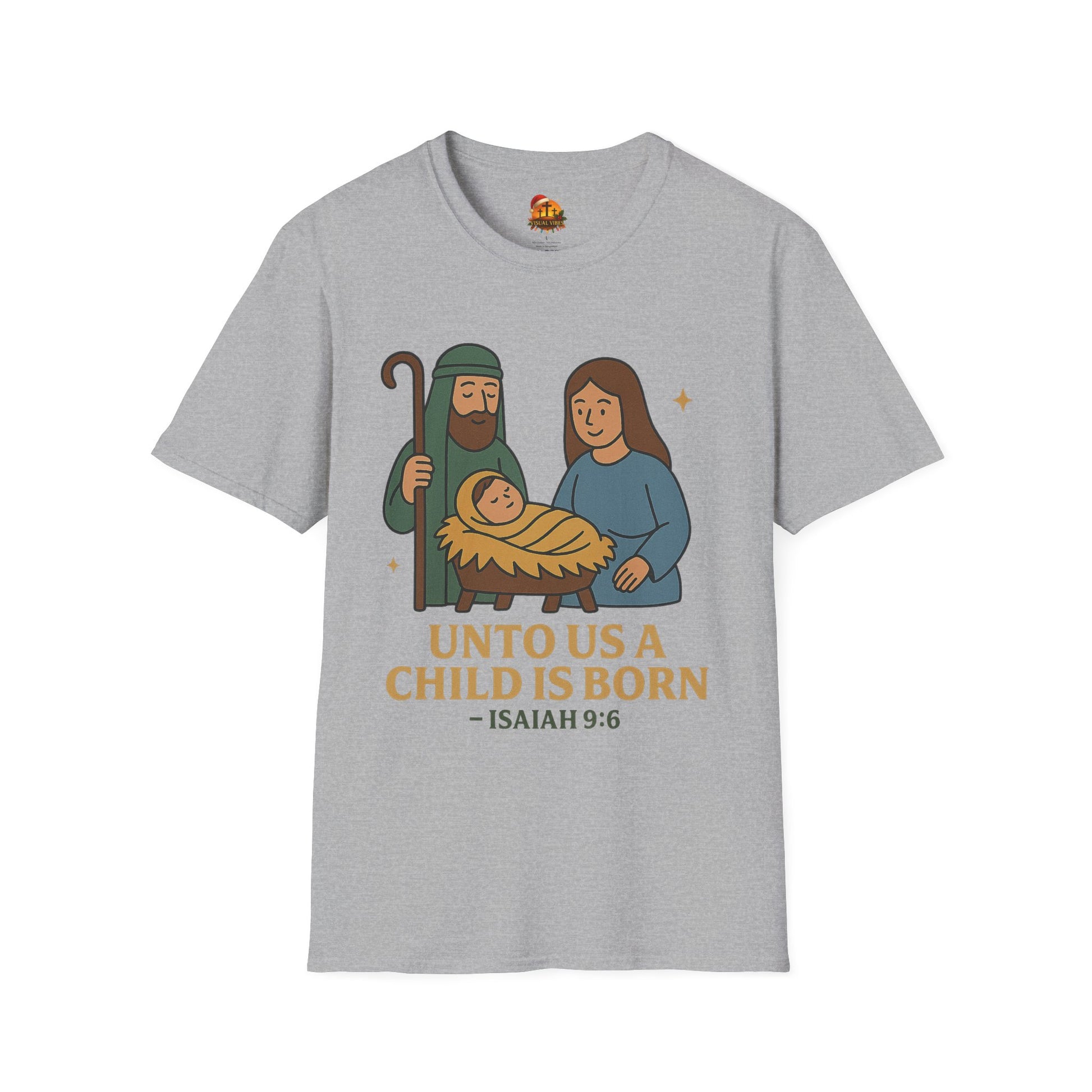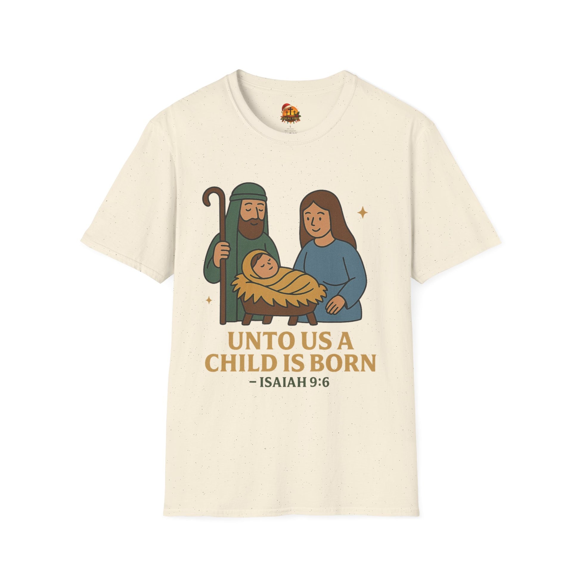 Soft, simple, and quietly reverent — this tee carries a gentle nativity scene and the Isaiah 9:6 verse in warm, earthy tones. The lightweight, ring-spun cotton feels smooth against the skin and hangs with a classic crew-neck silhouette that tucks easily into everyday life. Wear it during church gatherings, low-key family holiday moments, or while passing on a calm, faith-centered message during the season. The illustration’s rounded, modern lines and muted palette give the traditional scene a tender, approachable look that fits both kids of faith and grownups who want subtle, meaningful holiday wear.
