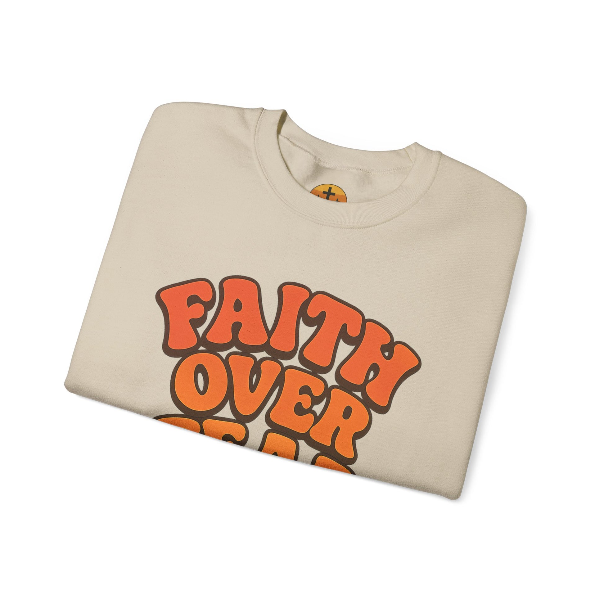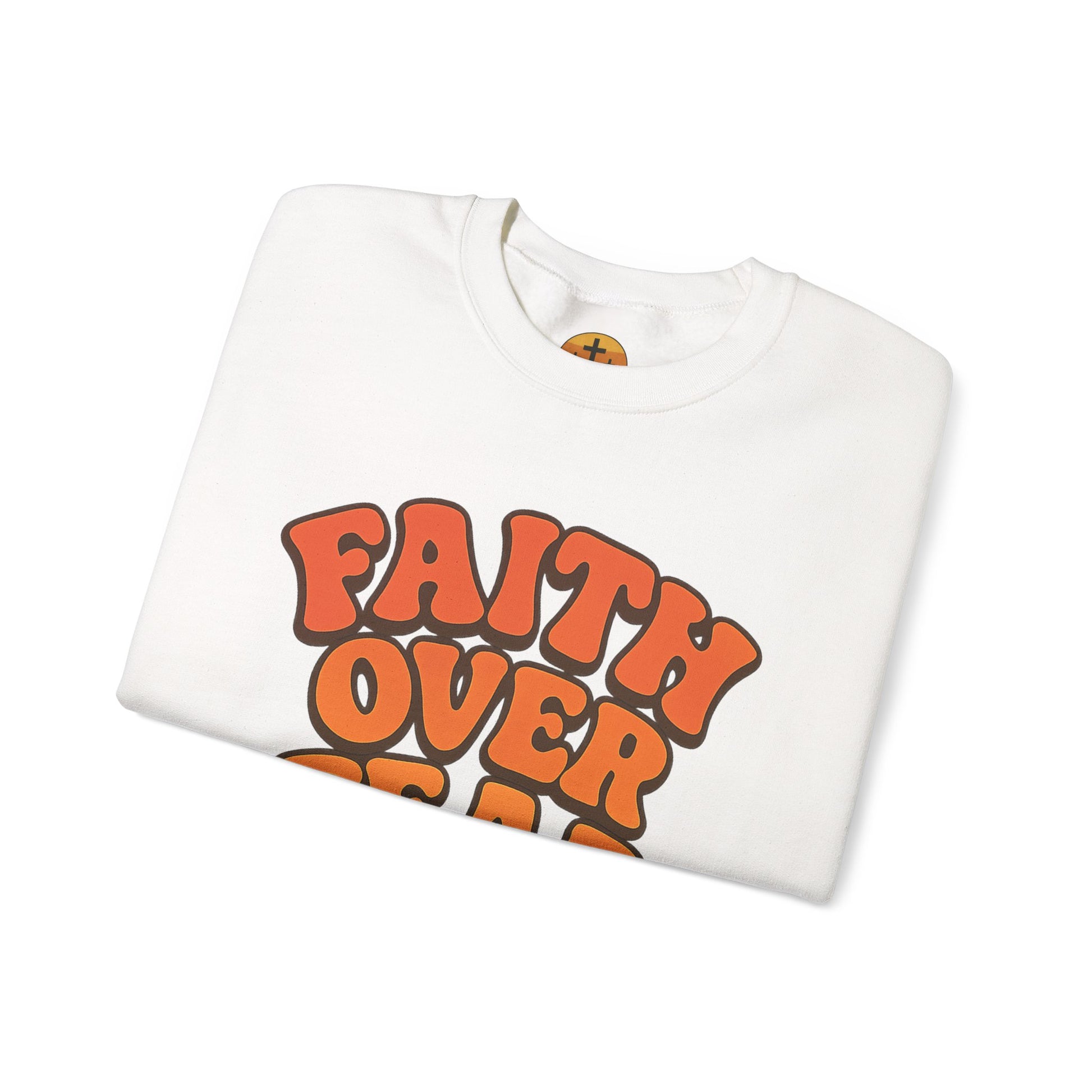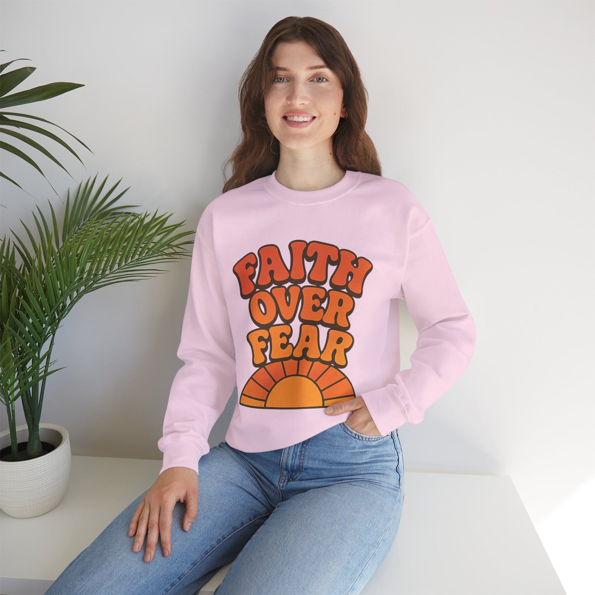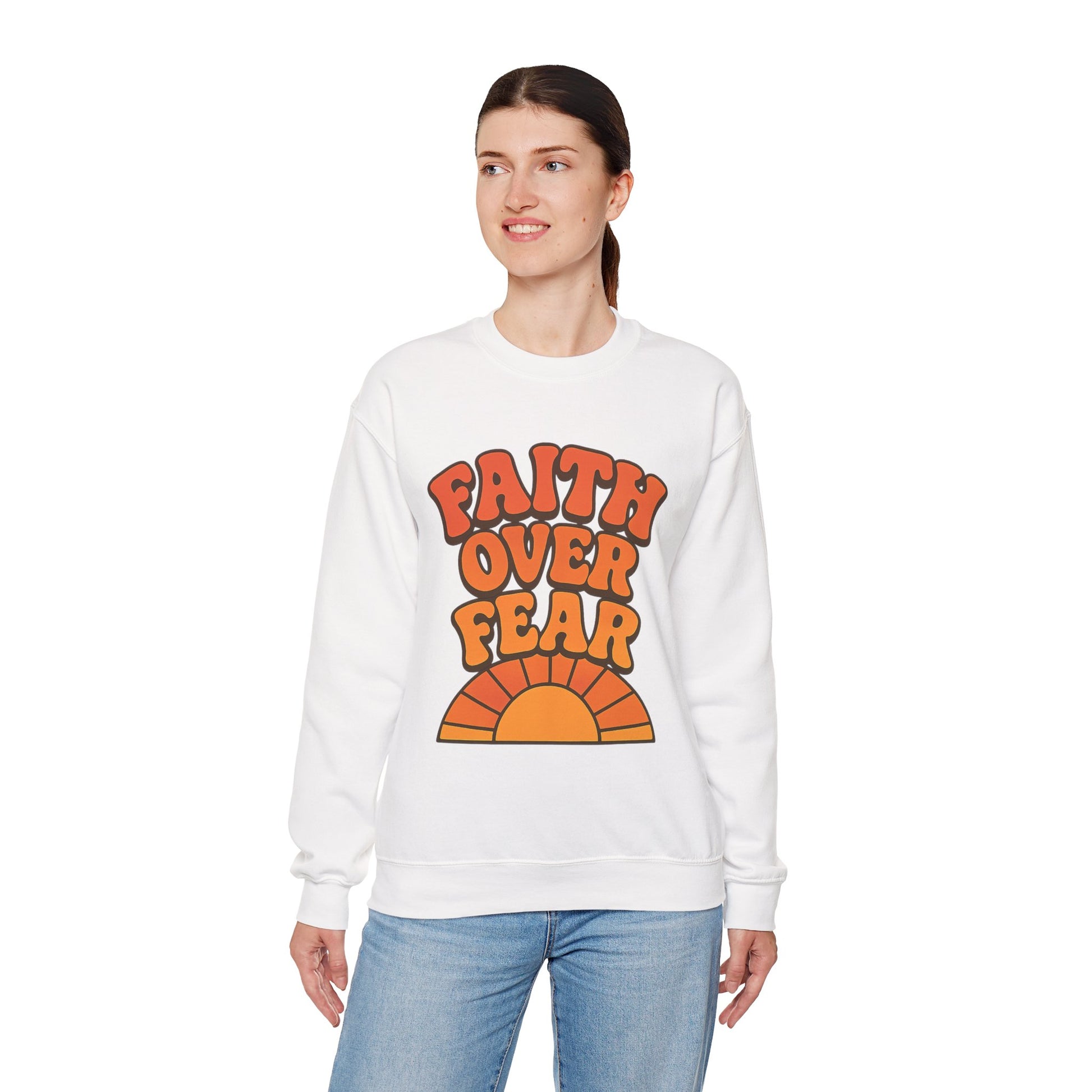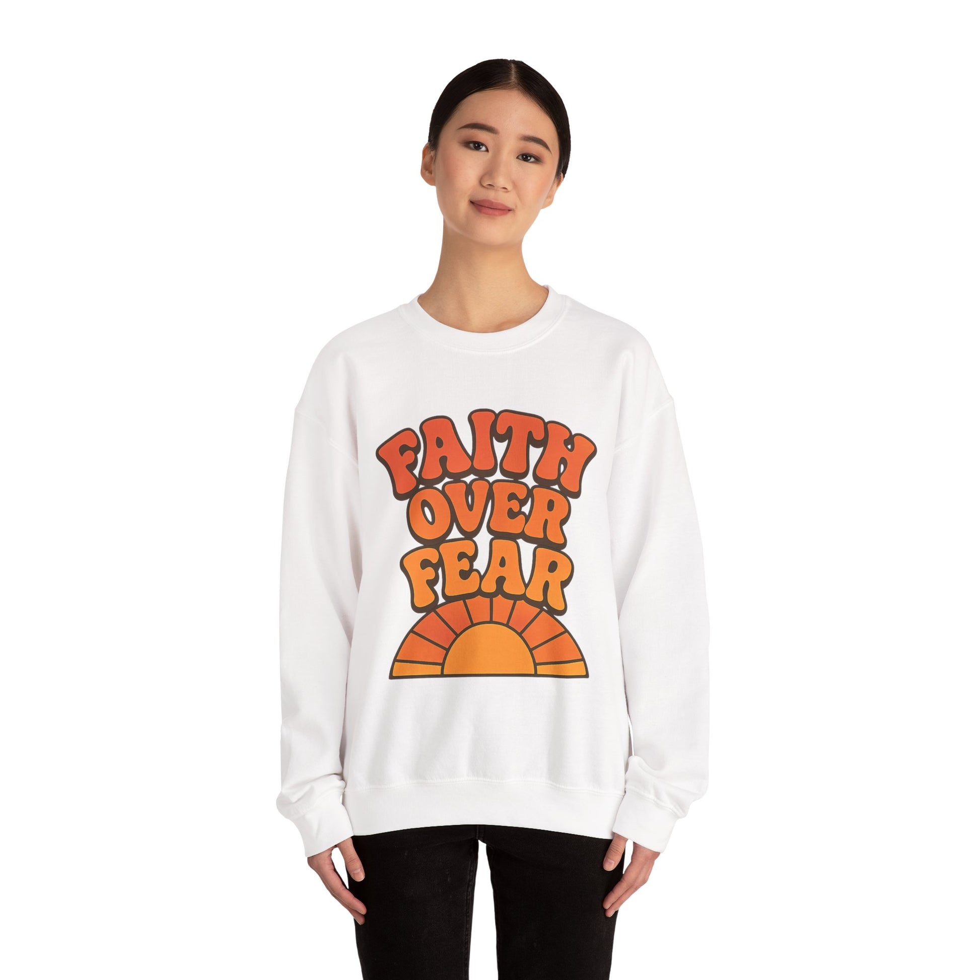 Stay cozy and stylish with this unisex heavy blend crewneck sweatshirt that radiates positivity and warmth. Featuring the uplifting message "Faith Over Fear" paired with a retro sun graphic, this sweatshirt is perfect for anyone looking to spread good vibes. Made with a medium-heavy fabric blend of cotton and polyester, it offers a soft, comfy fit ideal for chilly days or lounging at home. Whether you're enjoying a casual outing, celebrating a holiday like Thanksgiving, or just relaxing with friends, this sweatshirt fits seamlessly into your everyday life. It’s a fantastic gift for friends and family who appreciate thoughtful messages and cozy apparel, perfect for occasions like birthdays, Christmas, or just because!