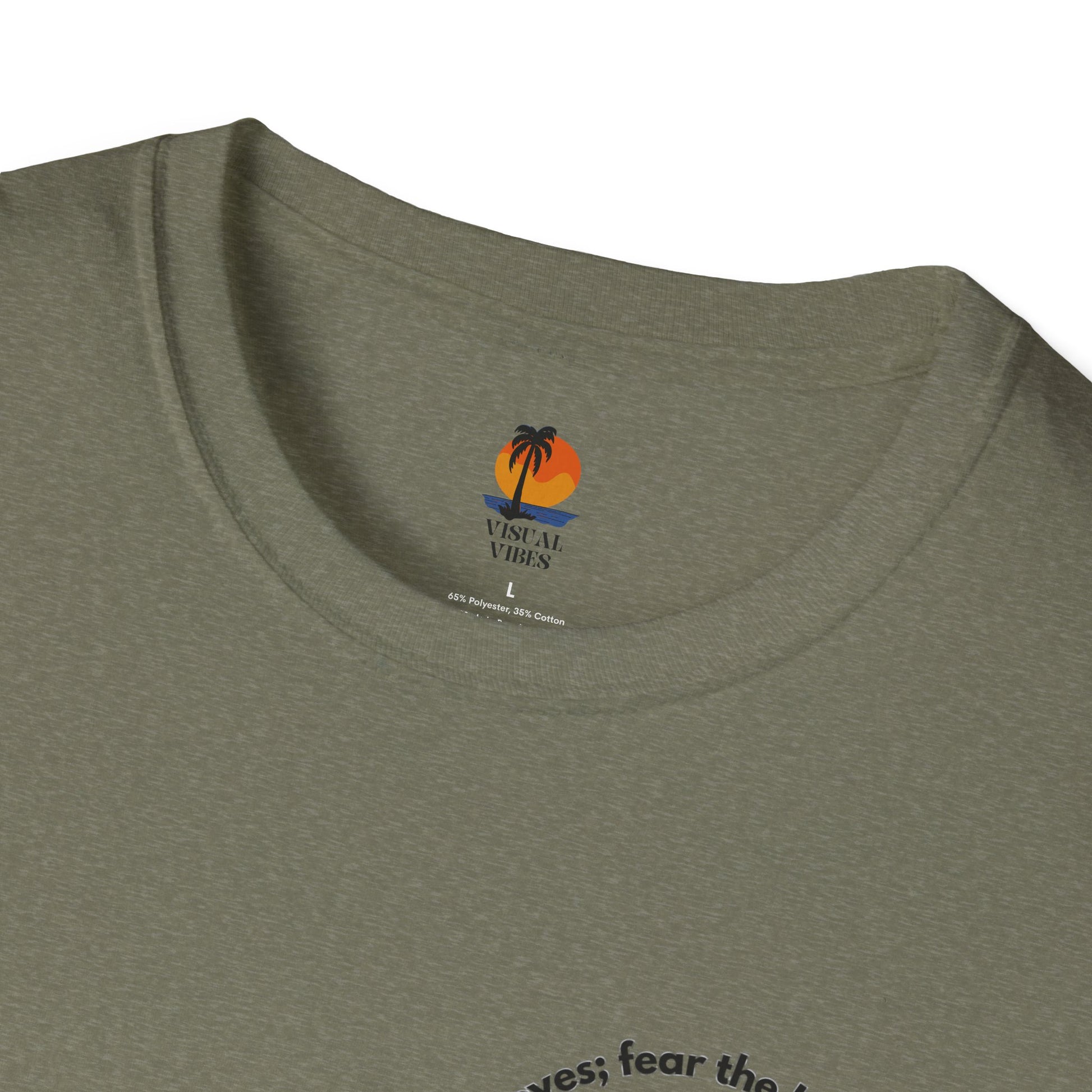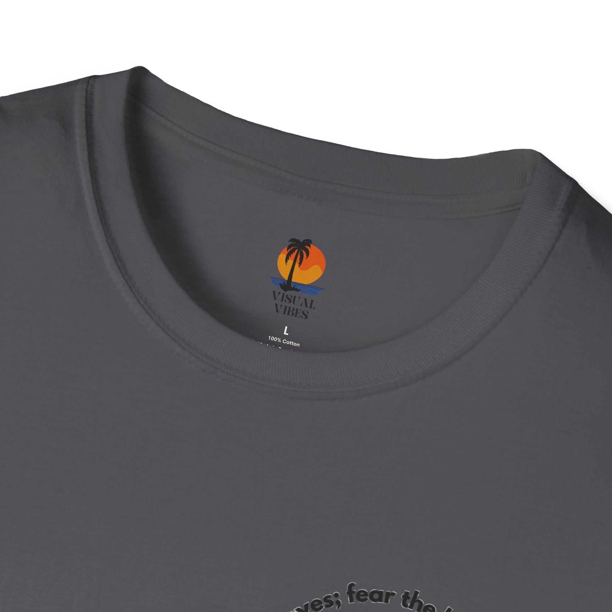 This soft and comfortable unisex T-shirt features the inspiring quote 'Fear the lord, turn away from evil'. It gives off a positive and motivational vibe, perfect for those looking to make a statement with their clothing. Ideal for adults looking for a versatile and stylish tee for everyday wear or special occasions.