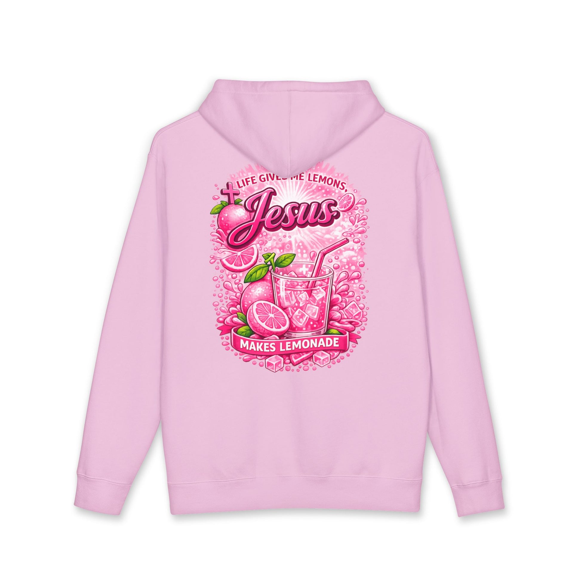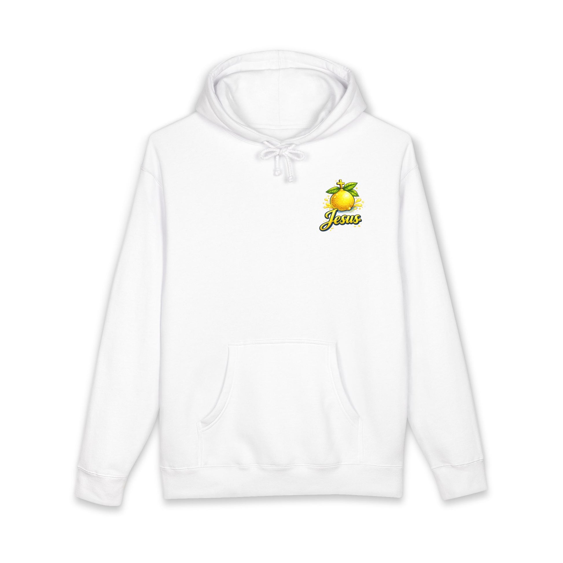 This heavyweight hooded sweatshirt wraps you in cozy resilience and sunny faith. The front features a small, hand-drawn lemon emblem over the heart, while the back blooms with a vibrant illustration: ice-filled pitcher, bright sliced lemons and the uplifting line, “When life gives me lemons, Jesus makes lemonade.” Thick fleece lining and substantial 10 oz fabric make it feel like a warm embrace on cool mornings. The relaxed cut layers easily over tees and flannels; ribbed cuffs and waistband hold shape through wear. It’s for mornings at the farmer’s market, slow Sunday drives, or porch conversations — a wearable reminder of hope and simple sweetness.