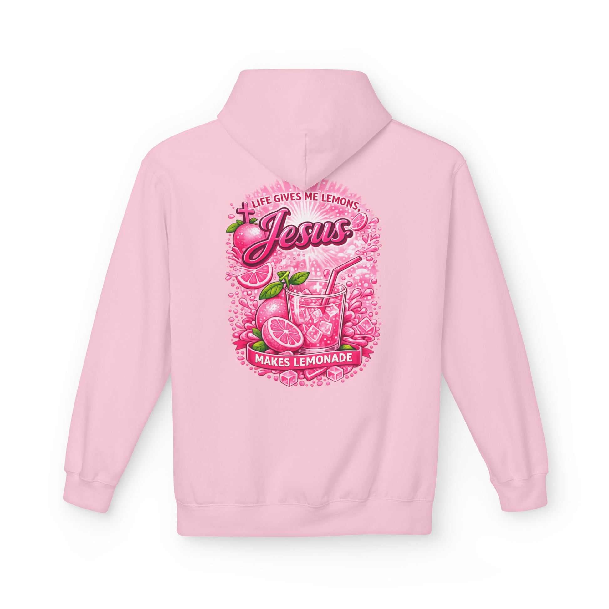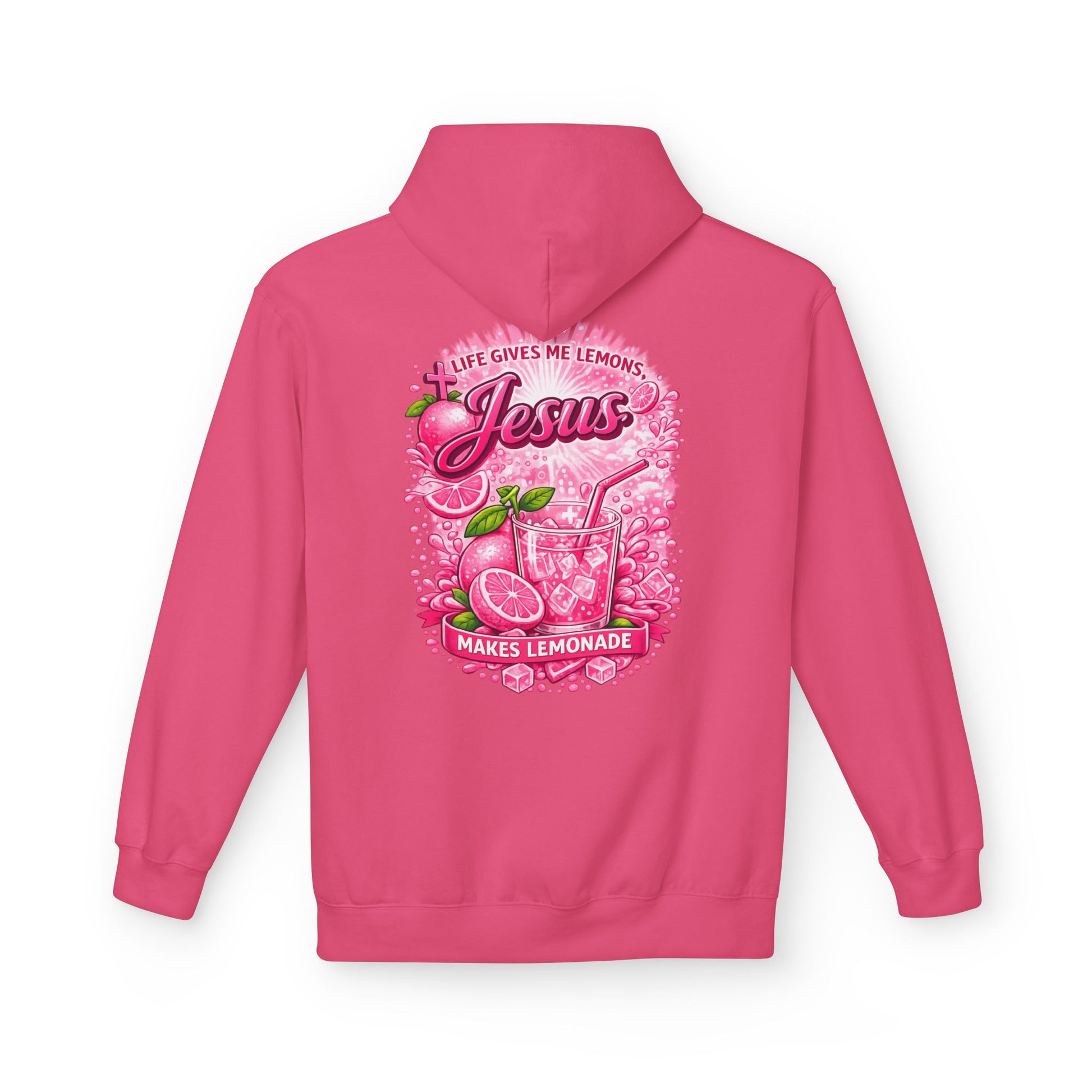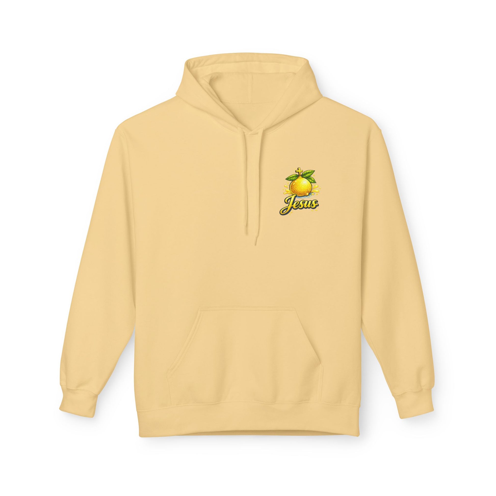 Soft, warm, and thoughtfully made — this midweight hoodie brings a bright, hopeful message into everyday wear. The front keeps things subtle with a small lemon-and-script emblem, while the back blooms into a sunlit illustration: ripe lemons, a pitcher of lemonade, and the phrase “Life gives me lemons — Jesus makes lemonade.” It feels like a quiet reminder you can wear: gentle faith, sunny optimism, and the comfort of a trusted favorite. The relaxed drop-shoulder fit and pouch pocket make it effortless for morning coffee runs, casual church gatherings, or slow afternoons at the kitchen table. Sustainable and socially conscious manufacturing adds an extra layer of meaning when you reach for it day after day.