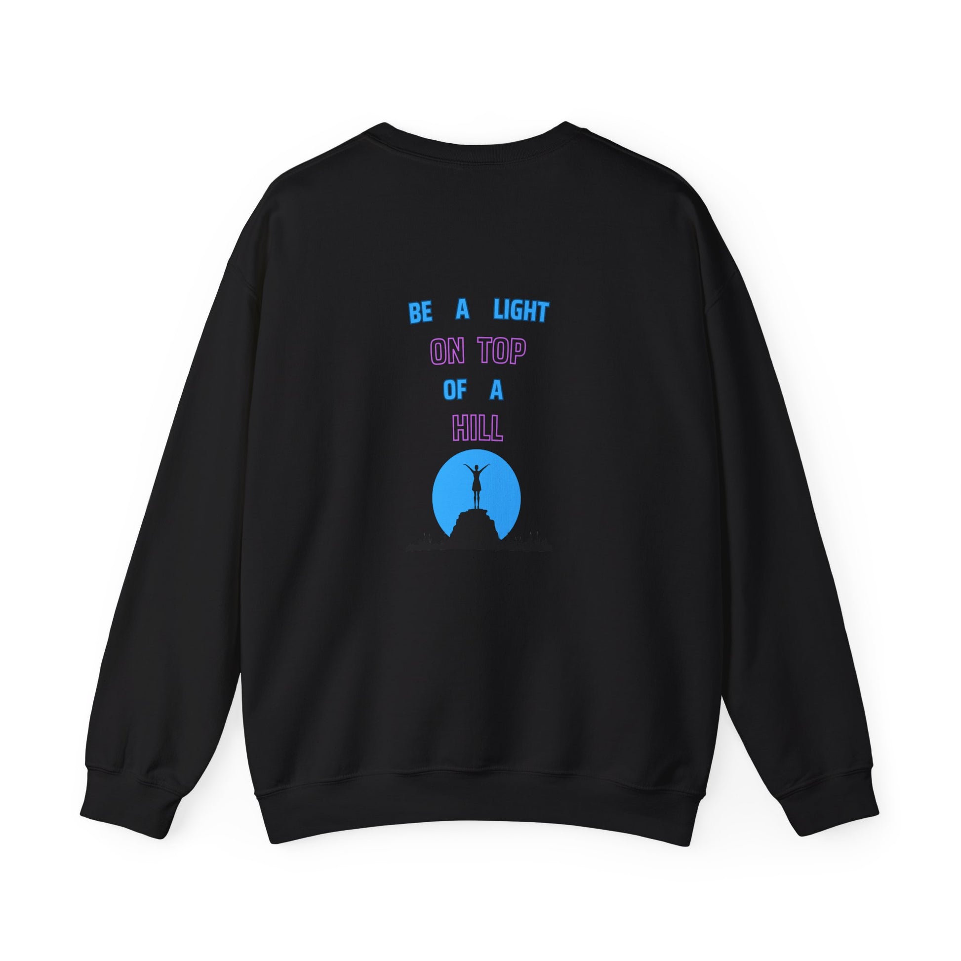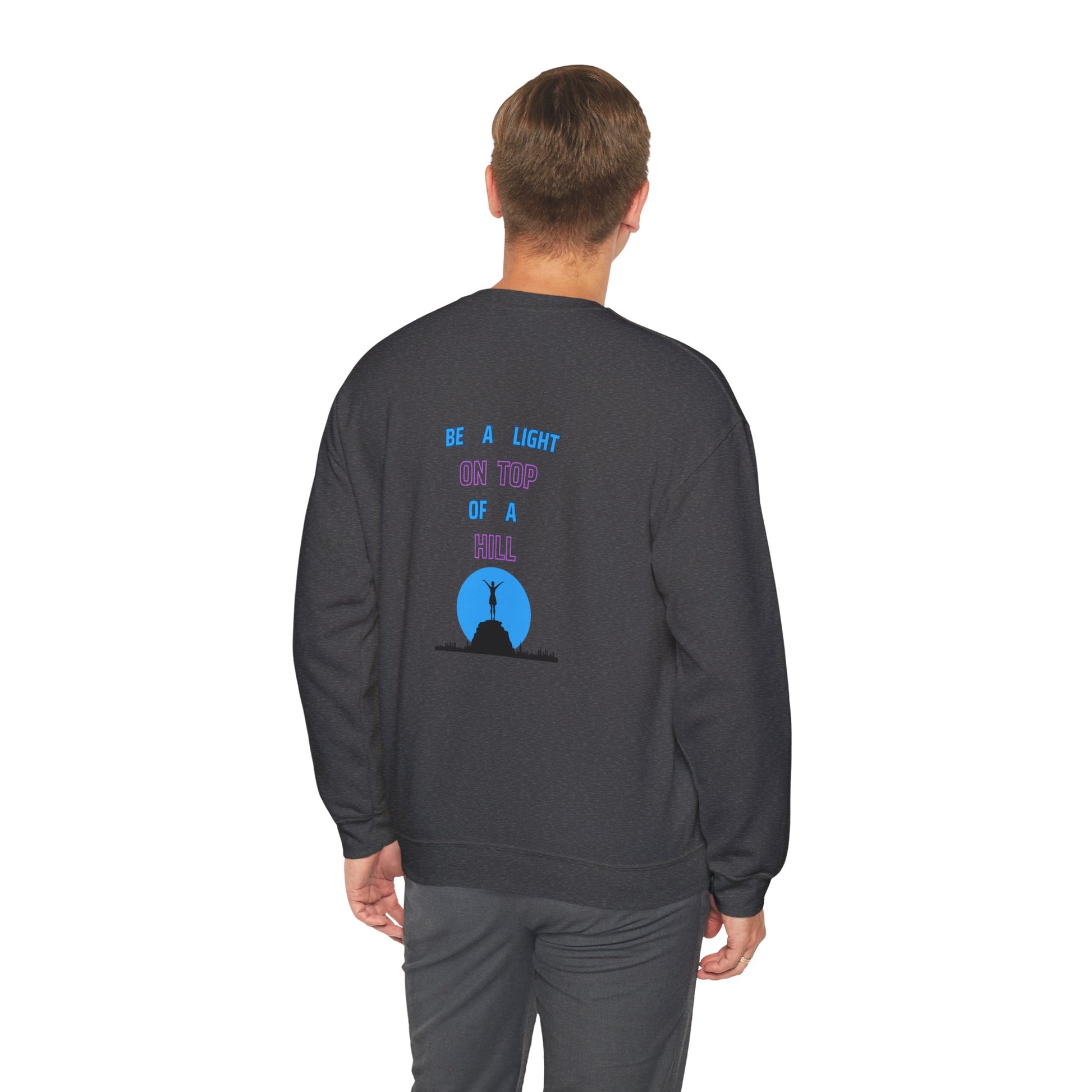 Be a light on top of a hill. This cozy crewneck sweatshirt provides comfort and durability, perfect for the colder months. With a classic fit and clean-cut style, it is suitable for adults looking for a versatile and stylish piece. Best worn during casual outings or lounging at home, this sweatshirt is a great addition to your wardrobe, especially during the holiday season.