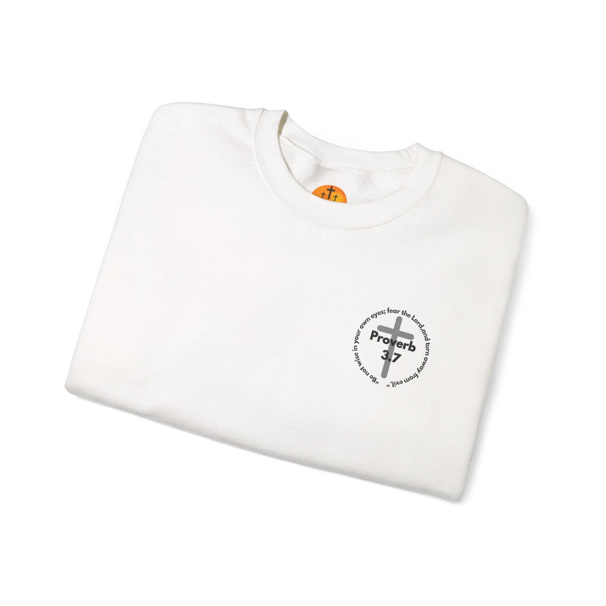 A cozy and durable Proverbs 3:7 sweatshirt with a classic fit and crew neckline, perfect for colder months. Ideal for adults looking for a comfortable and stylish addition to their wardrobe. Relevant for religious celebrations and occasions.