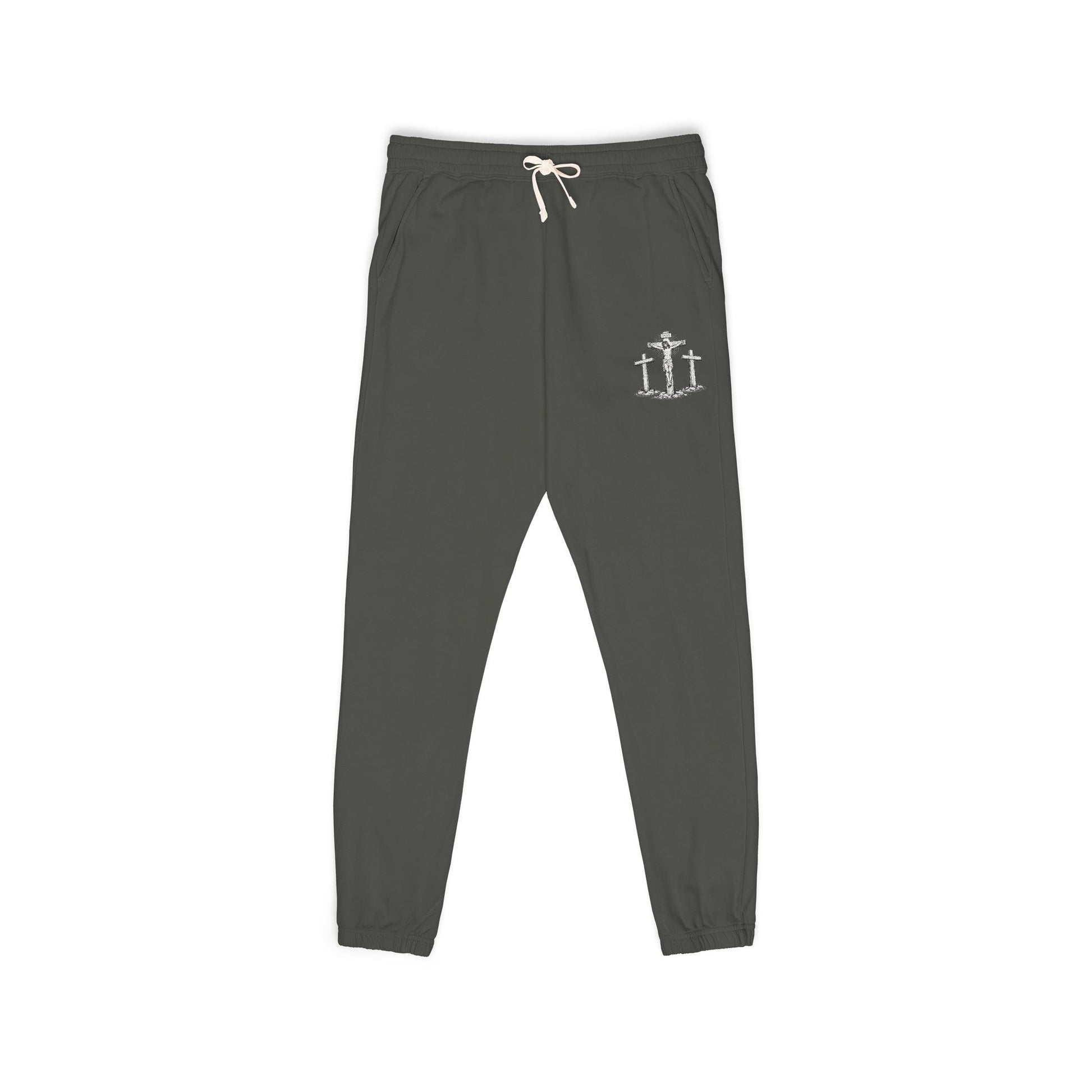 These garment-dyed fleece sweatpants bring an easy, lived-in look to slow mornings and late-night hangs. The washed charcoal tone and subtle embroidered crest at the hip read like a quietly curated uniform for people who value comfort without shouting for attention. Slip them on with worn sneakers or barefoot at home — they move with you through errands, studio sessions, and couch-side reading. The relaxed cut and medium-weight cotton hold shape while feeling soft against the skin, so they become the pair you reach for when you want to feel grounded and at ease.